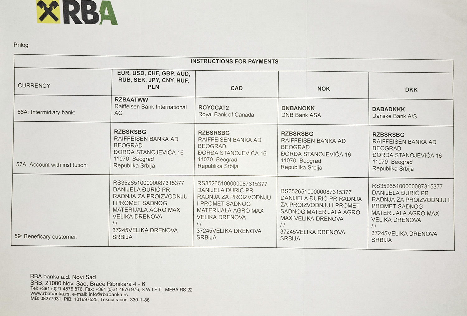 - Tekući račun: 265-3300310030576-44 RBA banka
